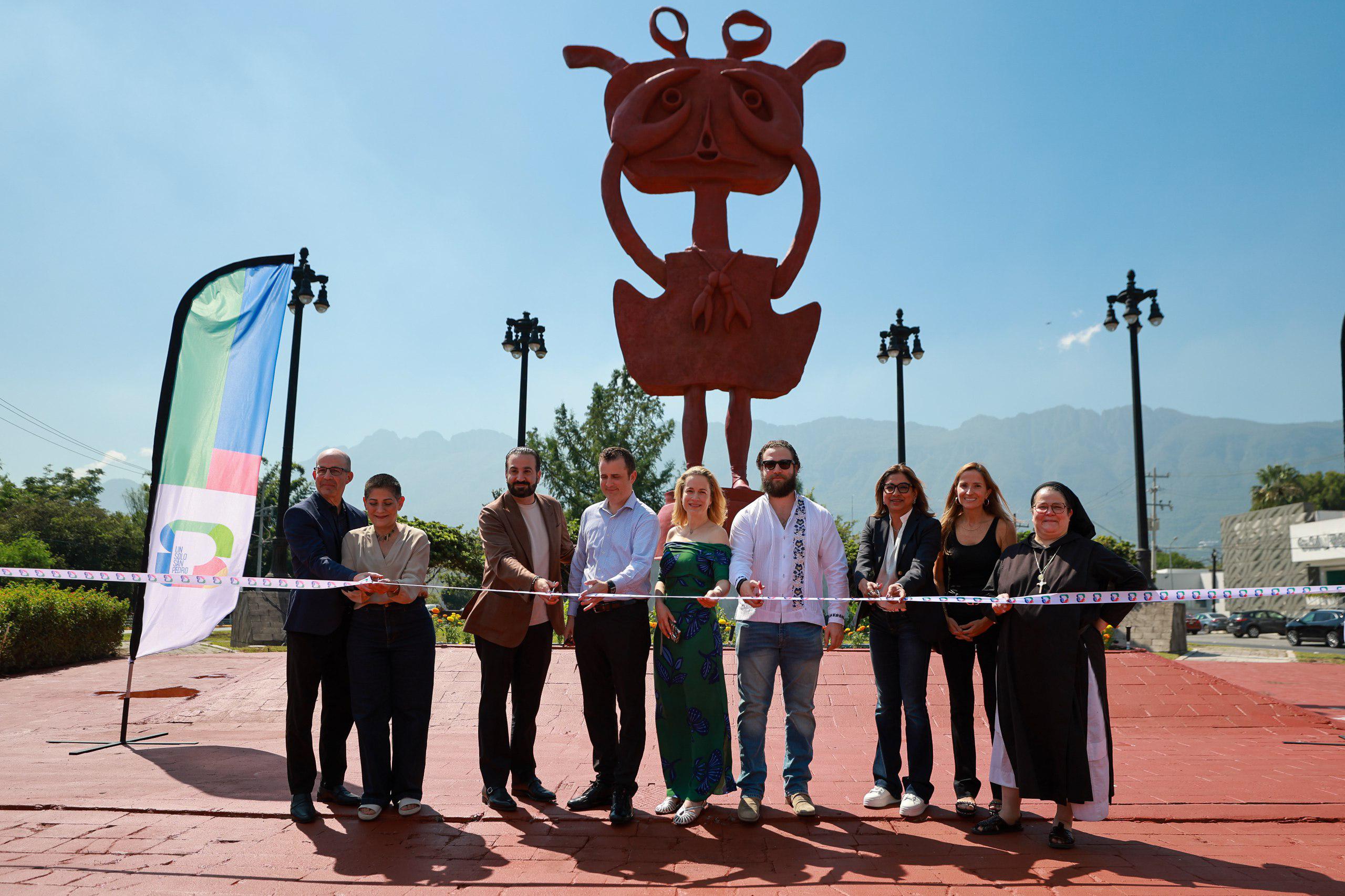 En la ceremonia participaron autoridades municipales, así como Stefan, Vanessa, Alana, Antón y Maximiliano Fernández, hijos del recientemente fallecido Alcalde Mauricio Fernández Garza, quien promovió la llegada de esta pieza como parte de su visión de integrar el arte a los espacios públicos del municipio.